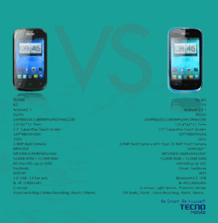 Tecno P3 runs an Operating system of Android 2.3.5 while Tecno N3 runs an Operating system of Android 2.3.6 Gingerbread.